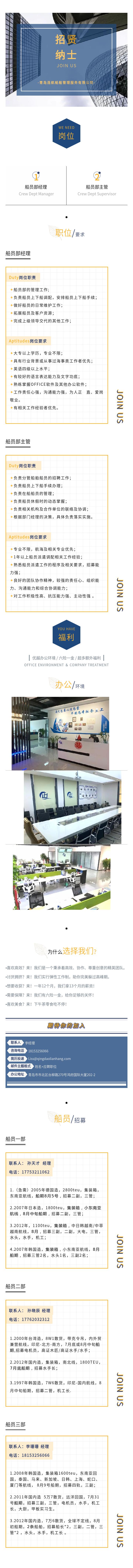 青島連航丨招聘船員部經(jīng)理、主管和船員